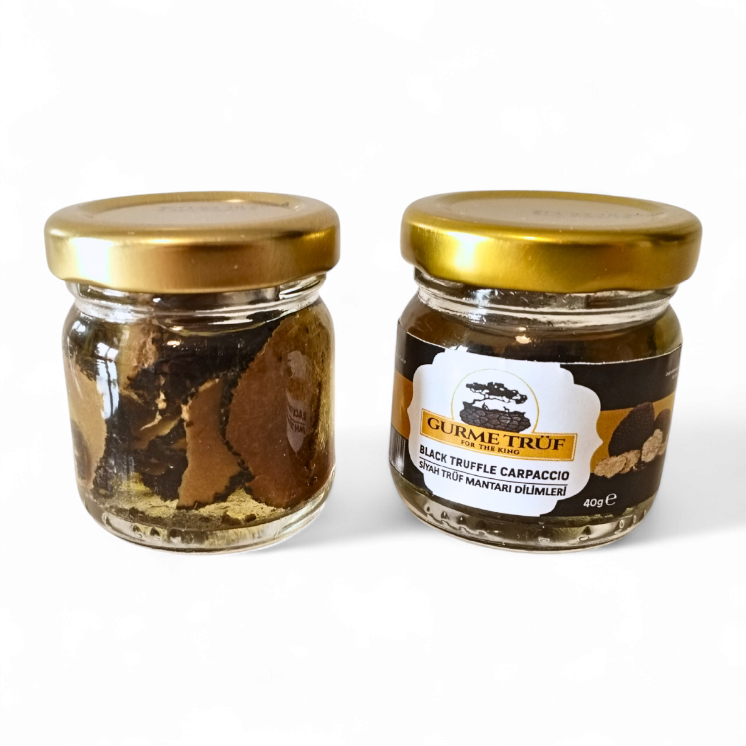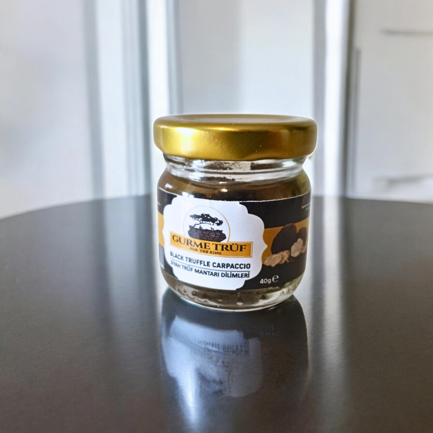 Gurme Trüf’ün doğadan sofralarınıza taşıdığı Siyah Trüf Mantarı Carpaccio, en kaliteli Tuber Aestivum mantarlarının titizlikle dilimlenmesiyle hazırlanmıştır. %100 doğal yöntemlerle işlenen bu eşsiz ürün, trüf mantarının yoğun lezzetini ve aromasını yemeklerinize taşır.