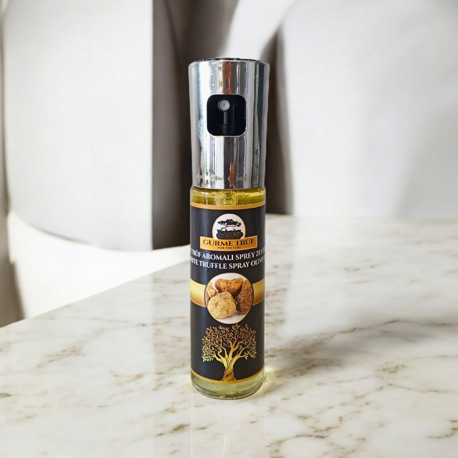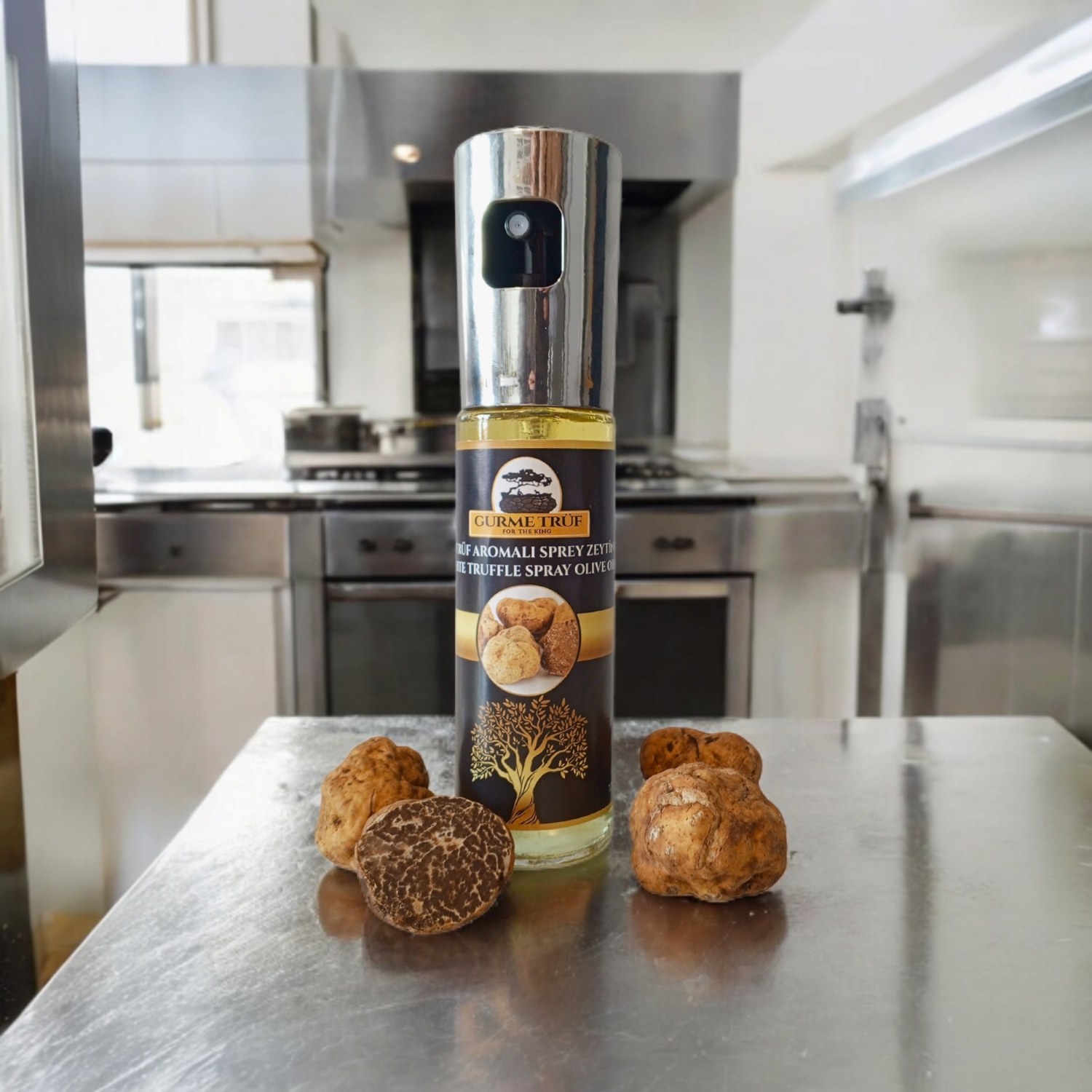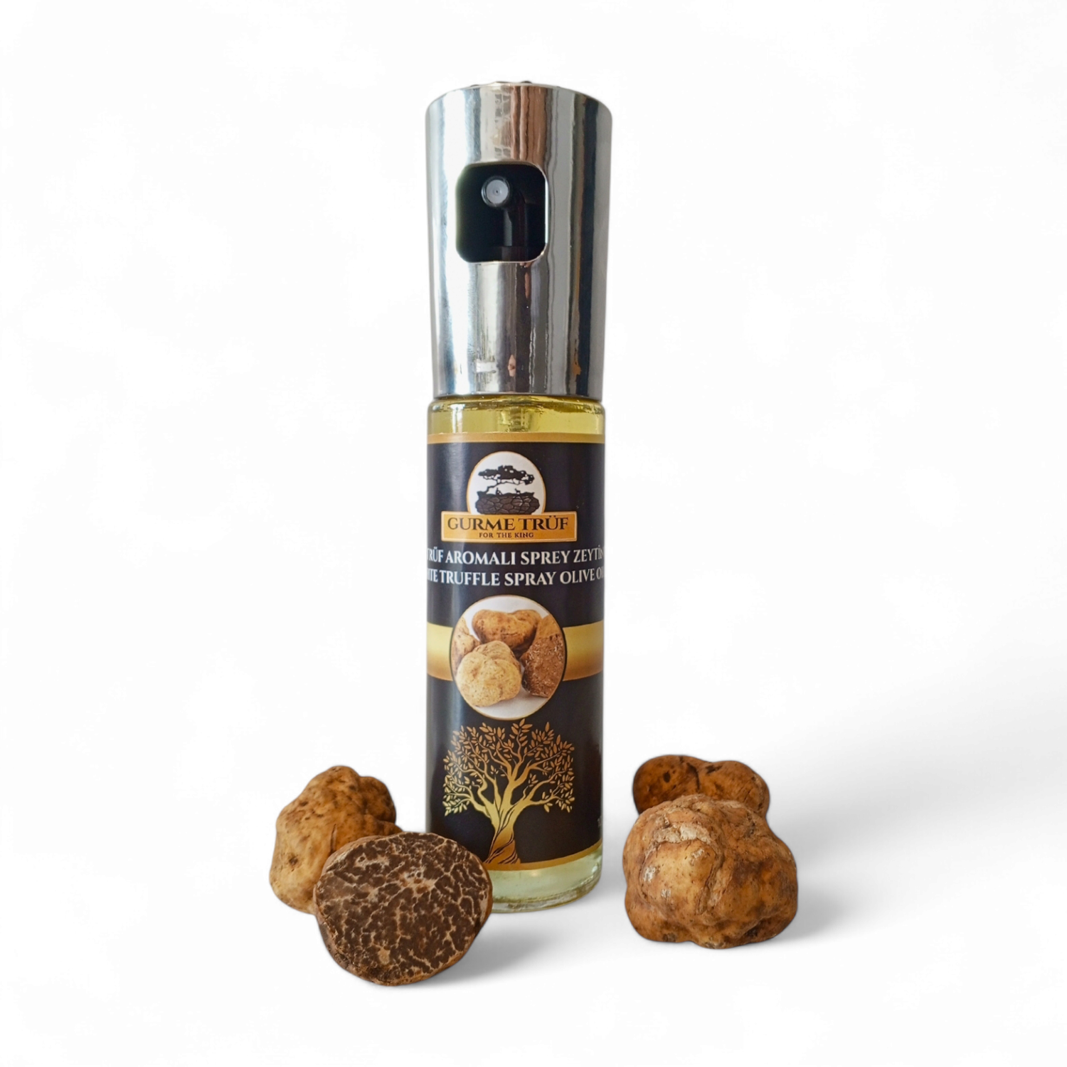Trüf yağı spreyi ile mutfağınızda lüks bir dokunuş sunmaya hazır olun! Beyaz trüfün muhteşem aroması ile zenginleştirilmiş bu benzersiz ürün, yemeklerinize veya atıştırmalıklarınıza sofistike bir tat katacak. Trüf yağı, doğanın lezzetli bir hediyesi olan beyaz trüflerin özünü içinde barındırır ve yemeklerinize benzersiz bir aroma kazandırır.
