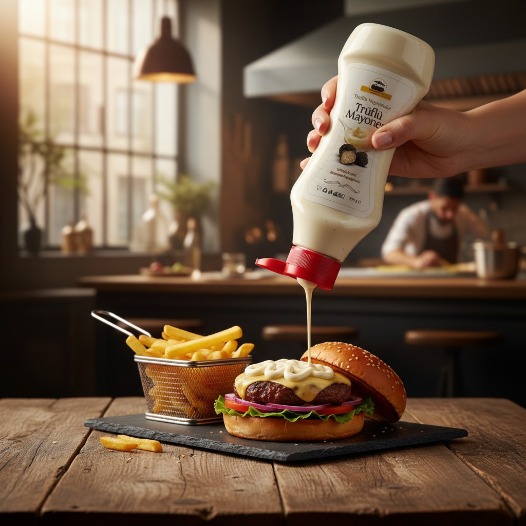 Gerçek kurutulmuş siyah trüf mantarı tanecikleri (%0,14) ile zenginleştirilen özel reçetesi, klasik mayonezlerden çok daha aromatik ve karakterli bir lezzet sağlar. Burgerden makarnaya, steak’ten patates kızartmasına kadar birçok tarifte fark yaratır.