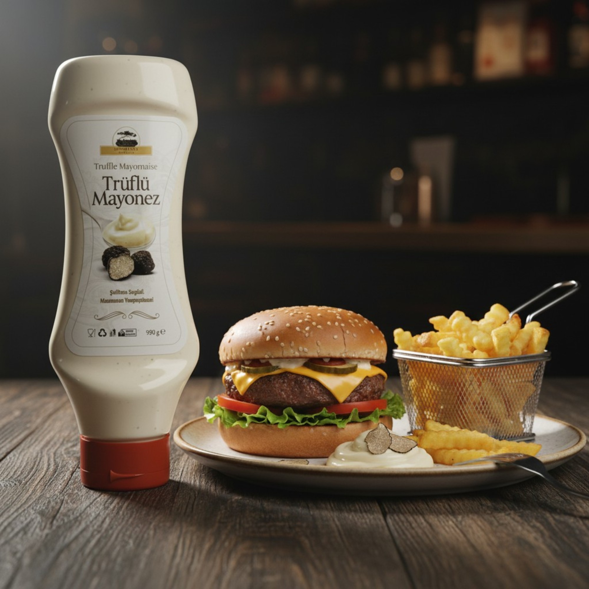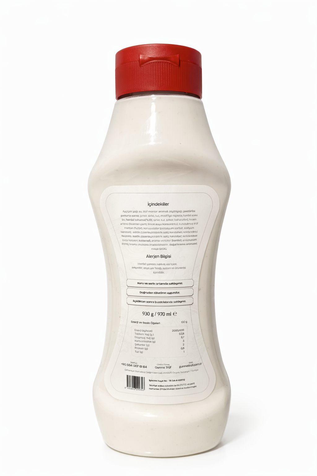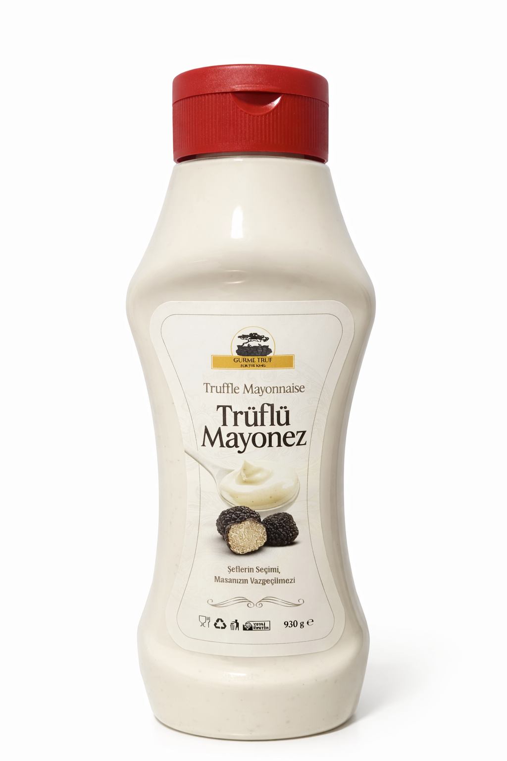 Gurme Trüf - Trüf Mantarlı Mayonez, yoğun trüf aroması ve kremamsı kıvamı ile yemeklerinize gerçek bir gurme dokunuş katar. 930 gram büyük boy ambalajı sayesinde hem ev kullanıcıları hem profesyonel mutfaklar için ekonomik ve uzun süreli kullanım sunar.